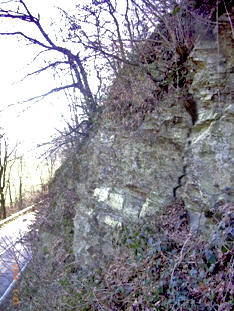 bestehen neben den steilen Felspartien entlang der Straße auch im bis zu > 100 m