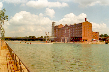 alte Hafenbecken wurde bis zur Mittelwasserlinie verfüllt und darüber ein neues